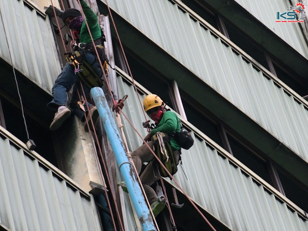 บริการทาสีและทำความสะอาดโครงสร้างอาคารสูงโดยทีมงานวิศวกรและเจ้าหน้าที่ความปลอดภัยวิชาชีพที่ผ่านการรับรองอย่างถูกต้องตามกฏหมาย
